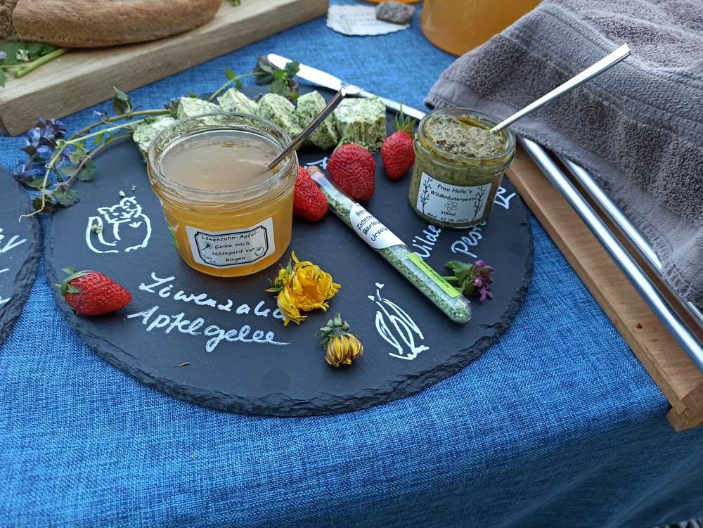 ist meine Intention und eine Herzensangelegenheit von mir. Ich möchte Euch mitnehmen auf Wanderungen, Spaziergänge und Safaris rund um das Thema „Wildkräuter“. Wir wollen gemeinsam die heimische Natur- und Pflanzenwelt vor unserer Haustür erkunden und erleben, was wir mit Wildkräutern, die übrigens keine Unkräuter sind, alles herstellen und zaubern können, um nicht nur unseren täglichen Speiseplan kulinarisch zu bereichern, sondern auch gesund und bunt aufzupeppen. Wildpflanzen haben bis zu 100mal mehr Vitamine, Mineralstoffe und sekundäre Pflanzenstoffe als Kulturpflanzen.Außerdem möchte ich Euch Workshops anbieten, um miteinander aus Wildkräutern die tollsten Dinge herzustellen. Sei es Kosmetik, färben mit Pflanzen oder die Abfüllung von Tinkturen, Auszügen und vielen anderen genussreichen Kräuterprodukten.